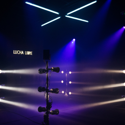 L’installation reconstitue un espace sensoriel, évoquant par le son et la lumière un imaginaire inspiré par la Lucha libre : un sport de combat mexicain très spectaculaire et populaire. La matière de cette composition est constituée de sons concrets et bruts, enregistrés in situ lors de matchs de Lucha libre. Deux cercles d’enceintes matérialisent l’espace du ring et celui de l’arène, créant une dynamique sonore entre jeu théâtral et burlesque. La mise en lumière, réalisée par Jimmy Boury, joue de l’univers kitch et décalé propre à la Lucha libre. __ Lucha Libre sera présentée sous sa forme finale au Festival FarAway au Manège – Centre Nationale de Reims. Vernissage le 5 février 2021 > jusqu’au 11 février 2021